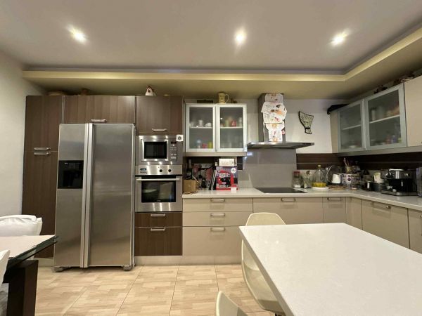 - Open space of a large fully eqquiped kitchen, dining area and living area
