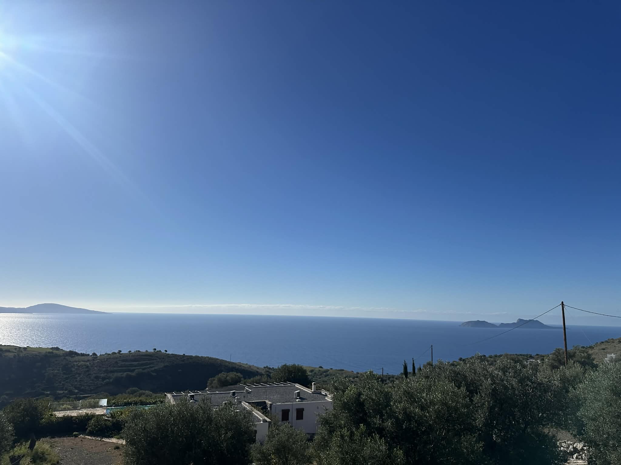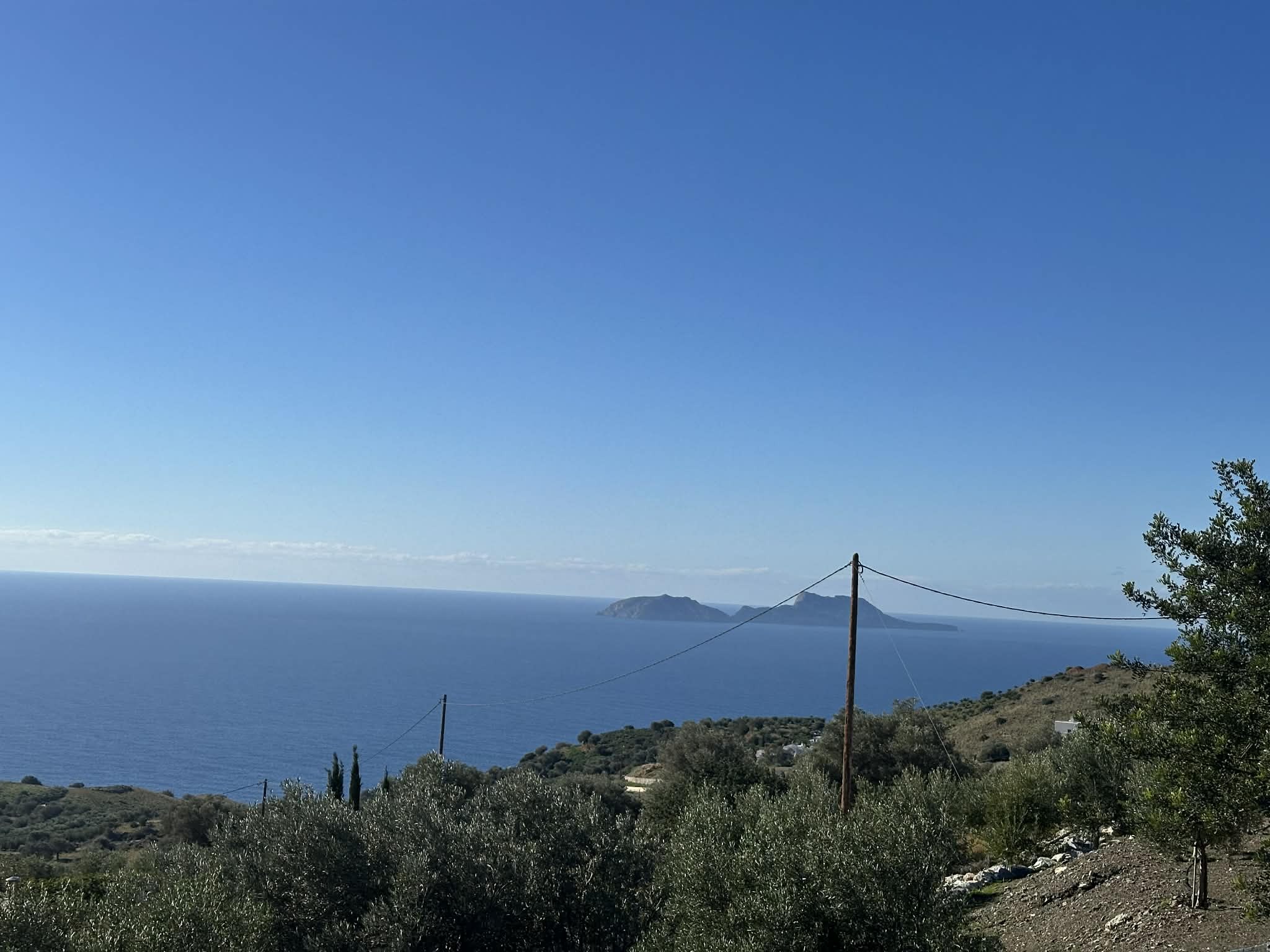 The property gently slopes and overlooks the picturesque village of Agia Galini and the stunning Paximadia Islands, creating a truly unique and serene setting.